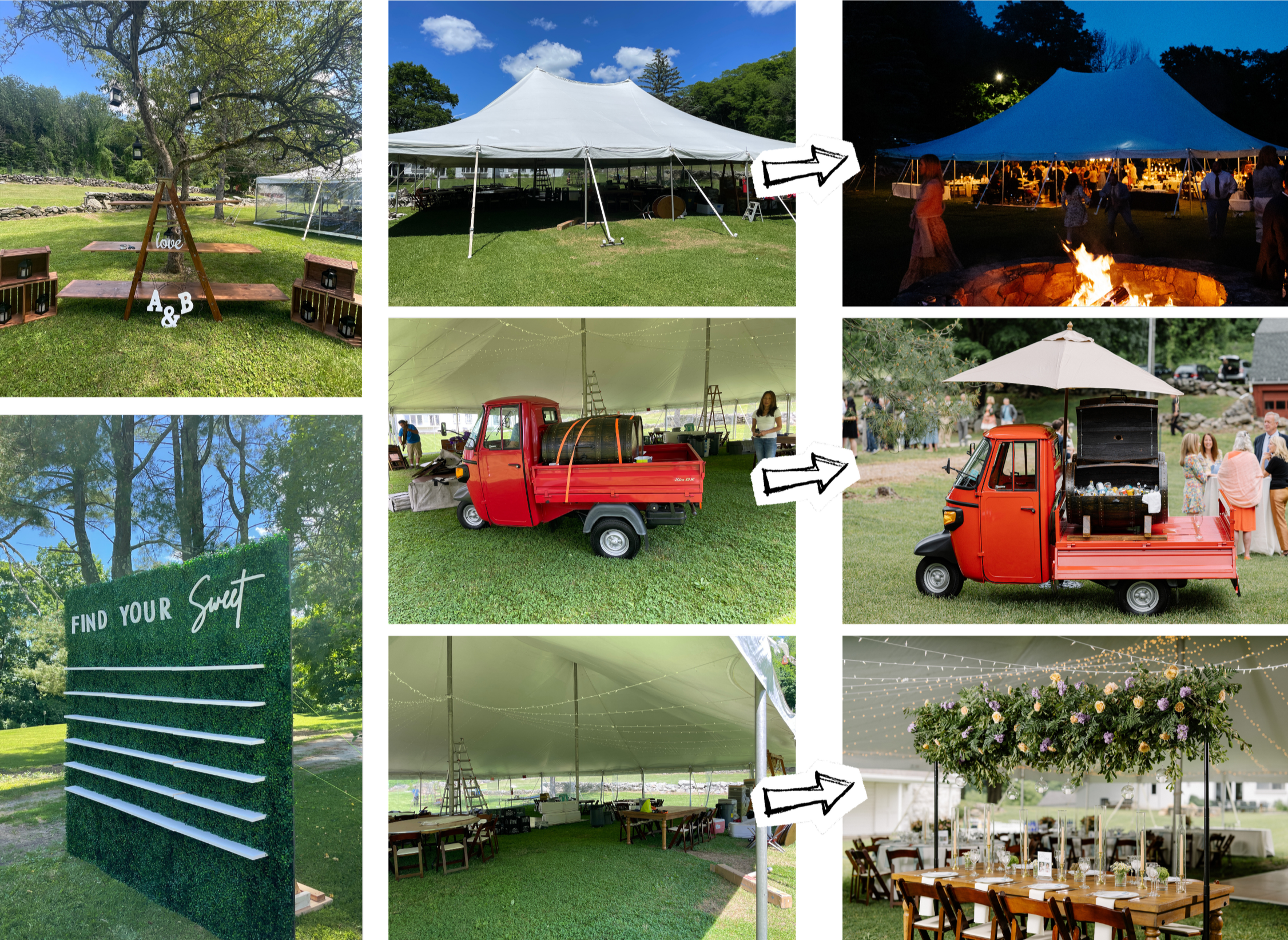 I helped bring events to life from start to finish. I assisted in setting up this wedding in Fairfield County, CT, and captured the transformation from a work-in-progress setup to the fully styled space.